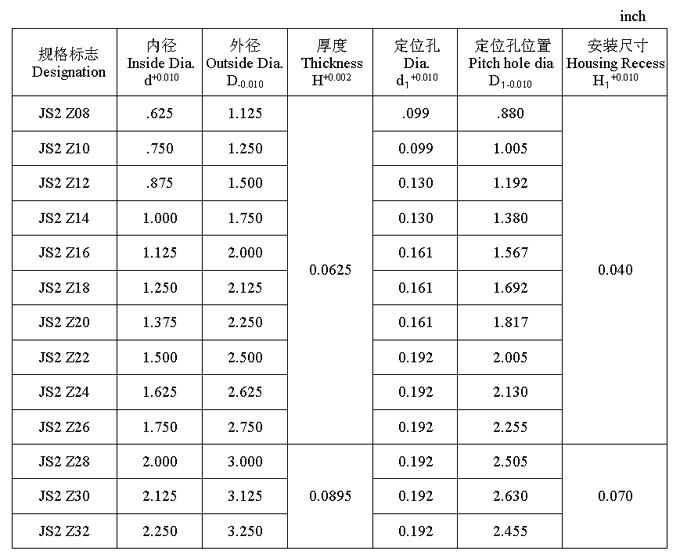 JS2 系列軸承英制尺寸(inch)