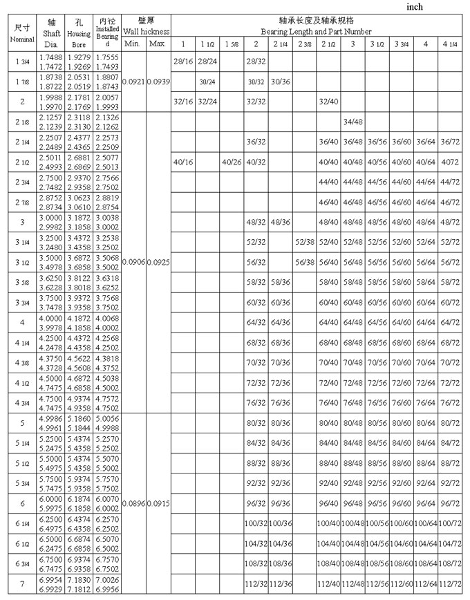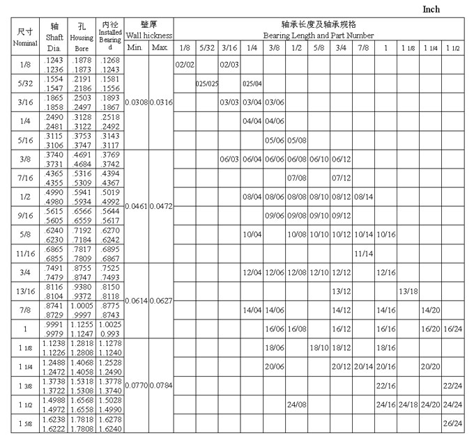 JS1 系列翻邊軸承英制尺寸