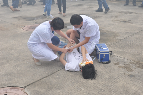 醫務人員對疏散中受傷的人員進行應急治療