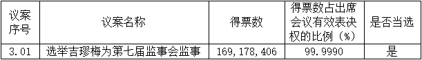 本次股東大會審議的議案三投票采用累積投票制表決,此議案的表決情況僅統計列示表決同意數。