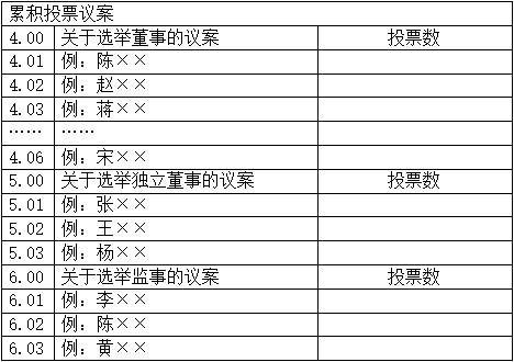 (六)采用累積投票制選舉董事、獨(dú)立董事和監(jiān)事的投票方式,詳見(jiàn)附件2