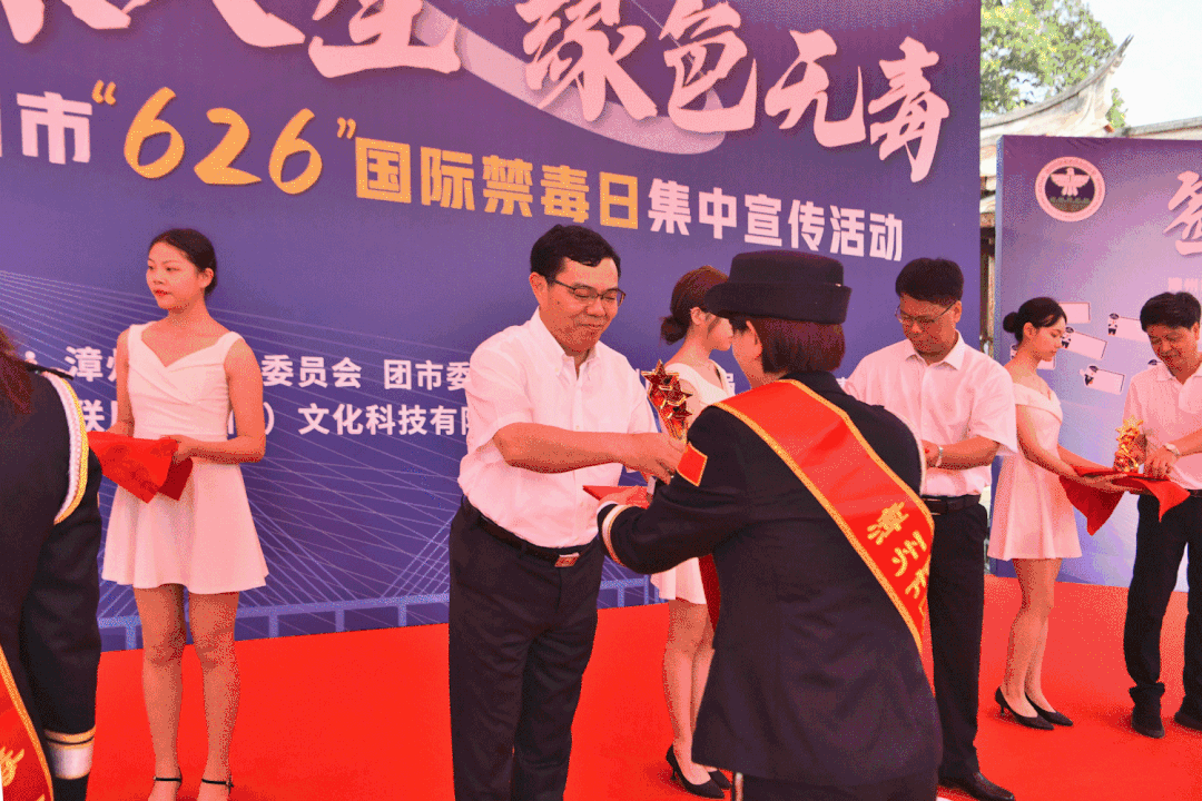 此次宣傳活動緊扣“健康人生、綠色無毒”主題,舉行漳州市首屆“最美禁毒人”頒獎儀式、簽名寄語儀式、禁毒IP形象“漳小禁”亮相發(fā)布,運用群眾喜聞樂見的形式,營造全民禁毒的濃厚氛圍。