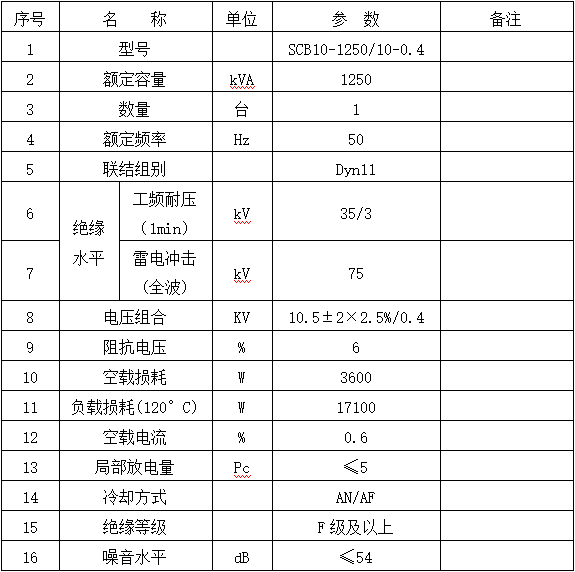 項目名稱:購置1臺1250kVA干式變壓器(含變壓器罩等)