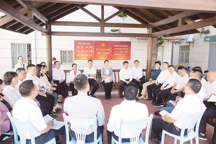 坐在同一條板凳上說話,與干部群眾面對面交流。市領導娓娓講述道,21年前的夏天,也就是2001年7月15日,在澳角村村民郭漢棟的小樓里,時任村黨支部書記的林亞民向時任福建省省長的習近平介紹“澳角村已從‘三不起’蛻變?yōu)椤目础保敃r習近平同志描繪起新的小康藍圖,說“以后農村的政策會一年比一年好”。今天,大家很高興來到澳角村,一起追尋習近平總書記的足跡,學習宣傳貫徹黨的二十大精神。
