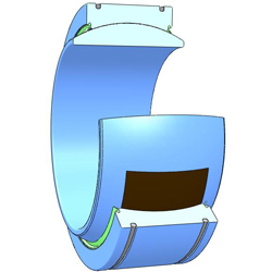 Design characteristics:Outer ring of carbon chromium steel,fractured,hardened and phosphated,with two seals at both sides,with sliding surface of PTFE fabric;Inner ring of carbon chromium steel,hardened,sliding surface treated with hard chromium plating. Outer ring of the XT design axially split twice, held together by retaining rings.