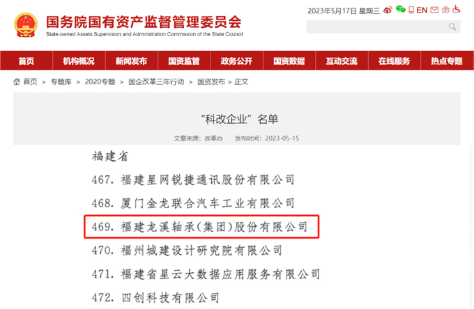 2023年5月15日,國務院國資委發布最新一批國企改革“科改企業”名單,龍軸集團成功入選,由“雙百企業”轉為“科改企業”,成為福建省4家新入選“科改企業”中唯一的地方國有控股上市公司。
