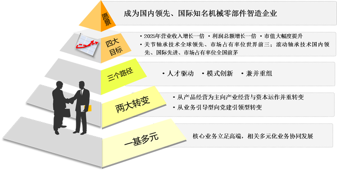 ?保持戰略定力,以需求牽引供給,以供給創造需求,精心謀劃“一基多元”為基點的發展戰略,打造國內領先、國際知名的機械零部件智造企業。