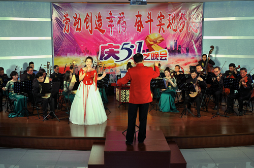 當晚,公司俱樂部燈光璀璨,樂聲歡騰。隨著強勁的鼓點響起,開場舞《騰龍鼓樂》拉開了整場晚會的序幕,隨后,公司“老”歌手曾艷輝及團委組建的舞蹈隊帶來了精彩的歌伴舞《雙腳踏上幸福路》,“新”歌手張錚聲情并茂地演繹了歌劇《江姐》選段《我為共產主義把青春貢獻》及民歌《桃花紅杏花白》,龍通藝術團的歌手李紅英、吳罕帶來的獨唱《好日子》、《我愛你中國》喜慶激昂,羅斌峰的笛子獨奏《牧民新歌》及樂團現場演奏的《龍江歡歌》、《紅樓夢插曲》、《蘇南小調》余音繞梁,男歌手熊凱、溫煥振的男聲獨唱《格桑梅朵》、《懷念戰友》、《駿馬奔馳保邊疆》、中央民族大學聲樂碩士郭源源為大家帶來的《海風陣陣》、《一杯美酒》大氣悠揚。
