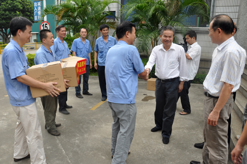2013年7月2日上午,市委常務(wù)、市總工會主席張禎錦一行在公司工會主席張?zhí)┥⒊?wù)副主席洪麗玲的陪同下,到我司藍田廠區(qū)看望、慰問高溫酷暑堅持奮戰(zhàn)在一線的廣大職工,為他們送去防暑降溫用品。市領(lǐng)導(dǎo)在了解了我司的生產(chǎn)情況及公司在保證員工安全健康的前提下,采取的一系列防暑降溫措施后,對我司表示肯定,并希望我司能夠繼續(xù)采取有效措施,合理安排工作時間,進一步改善職工工作環(huán)境和條件,把防暑降溫工作做得更好。