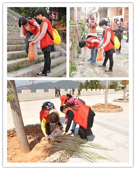 在古船渡和官畬村,志愿者們按小組分散拾荒。將沿途所見食品包裝袋、礦泉水瓶、果皮紙屑等雜物一一拾起,所過之處,白色垃圾、生活垃圾一概無蹤。