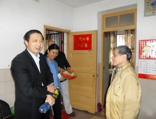 2013年4月28日,五一勞動節(jié)前夕,市國資委開展機關(guān)干部掛鉤幫扶困難群眾活動,陳偉成等6位國資委干部在公司工會領(lǐng)導(dǎo)張?zhí)┥⒑辂惲岬鹊呐阃拢咴L慰問了我司6戶困難職工,了解他們的生活、健康情況,為他們送去米、油等生活用品。