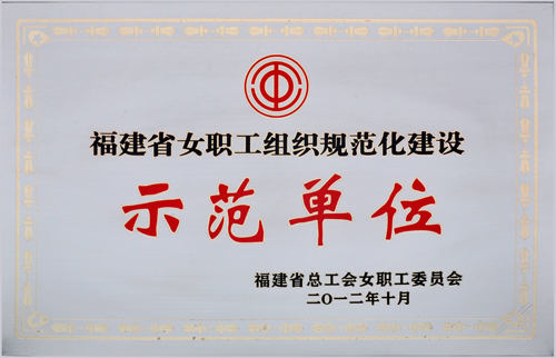 長期以來,公司女職工委員會以《中國工會章程》、《福建省女職工勞動保護條例》、《企業(yè)工會工作條例》為指導(dǎo),團結(jié)和帶領(lǐng)廣大女職工積極投身到生產(chǎn)經(jīng)營和各項工作中,深入開展了豐富多彩的各項活動,充分發(fā)揮女職工在企業(yè)建設(shè)中的作用,為公司持續(xù)、穩(wěn)定、協(xié)調(diào)發(fā)展做出了積極的貢獻。被評為福建省首批“女職工組織規(guī)范化建設(shè)示范單位”。