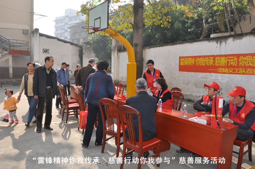 為迎接3月5日第50個(gè)“學(xué)雷鋒紀(jì)念日”暨第13個(gè)“中國(guó)青年志愿者服務(wù)日”的到來(lái),弘揚(yáng)“奉獻(xiàn)、友愛(ài)、互助、進(jìn)步”的志愿者精神,進(jìn)一步營(yíng)造公司志愿服務(wù)的濃郁氛圍,2013年3月4日上午,公司慈善義工分隊(duì)在俱樂(lè)部籃球場(chǎng)開(kāi)展 “雷鋒精神你我傳承 慈善行動(dòng)你我參與”慈善服務(wù)活動(dòng)。為社區(qū)居民提供電器檢查維修服務(wù)、健康保健咨詢義診服務(wù)、愛(ài)心理發(fā)服務(wù)、防火防盜咨詢服務(wù)等志愿服務(wù)活動(dòng)。