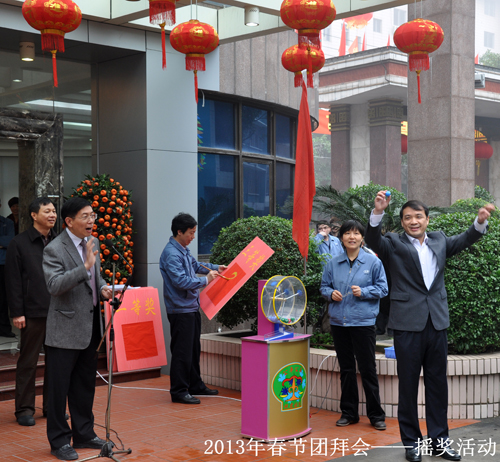 2月6日上午,一年一度具有龍軸特色的“春節(jié)團(tuán)拜會”在公司總部召開,公司高管及2000多名在職、離退休員工相聚一堂,共慶佳節(jié)。會上,公司黨委書記、董事長曾凡沛代表公司黨委、總部發(fā)表新春致辭,員工代表張高德也代表全體員工做了發(fā)言。抽獎(jiǎng)活動總是團(tuán)拜的壓軸好戲,大家的情緒隨著搖獎(jiǎng)機(jī)歡快的“噼里啪啦”聲高漲起來,每搖出一個(gè)號,就引來歡呼聲一片,現(xiàn)場熱鬧非凡!