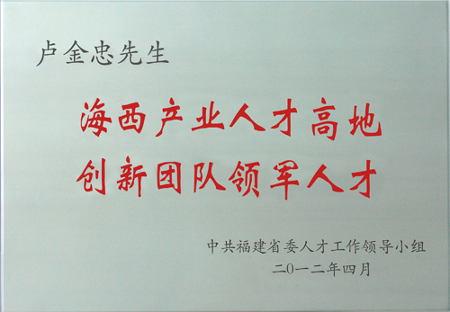 | 海西產(chǎn)業(yè)人才高地 創(chuàng)新團(tuán)隊(duì)領(lǐng)軍人才(盧金忠) | 福建省省人才工作領(lǐng)導(dǎo)小組 | ||