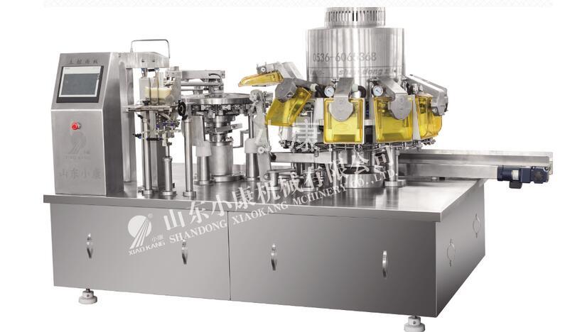 2、轉(zhuǎn)盤材料為精鑄鋁加工,真空室材料為鋁合加工件,真空蓋為高硬度工程塑料在滿足包裝機(jī)械衛(wèi)生標(biāo)準(zhǔn)及安全強(qiáng)度前提下,降低了重量節(jié)約了電機(jī)功率;其它主要部件采用304不銹鋼制件、高精度軸承、進(jìn)口塑料軸承等組件裝配而成;該系統(tǒng)為勻速連續(xù)旋轉(zhuǎn)運(yùn)動,從而保證包裝、封口質(zhì)量;